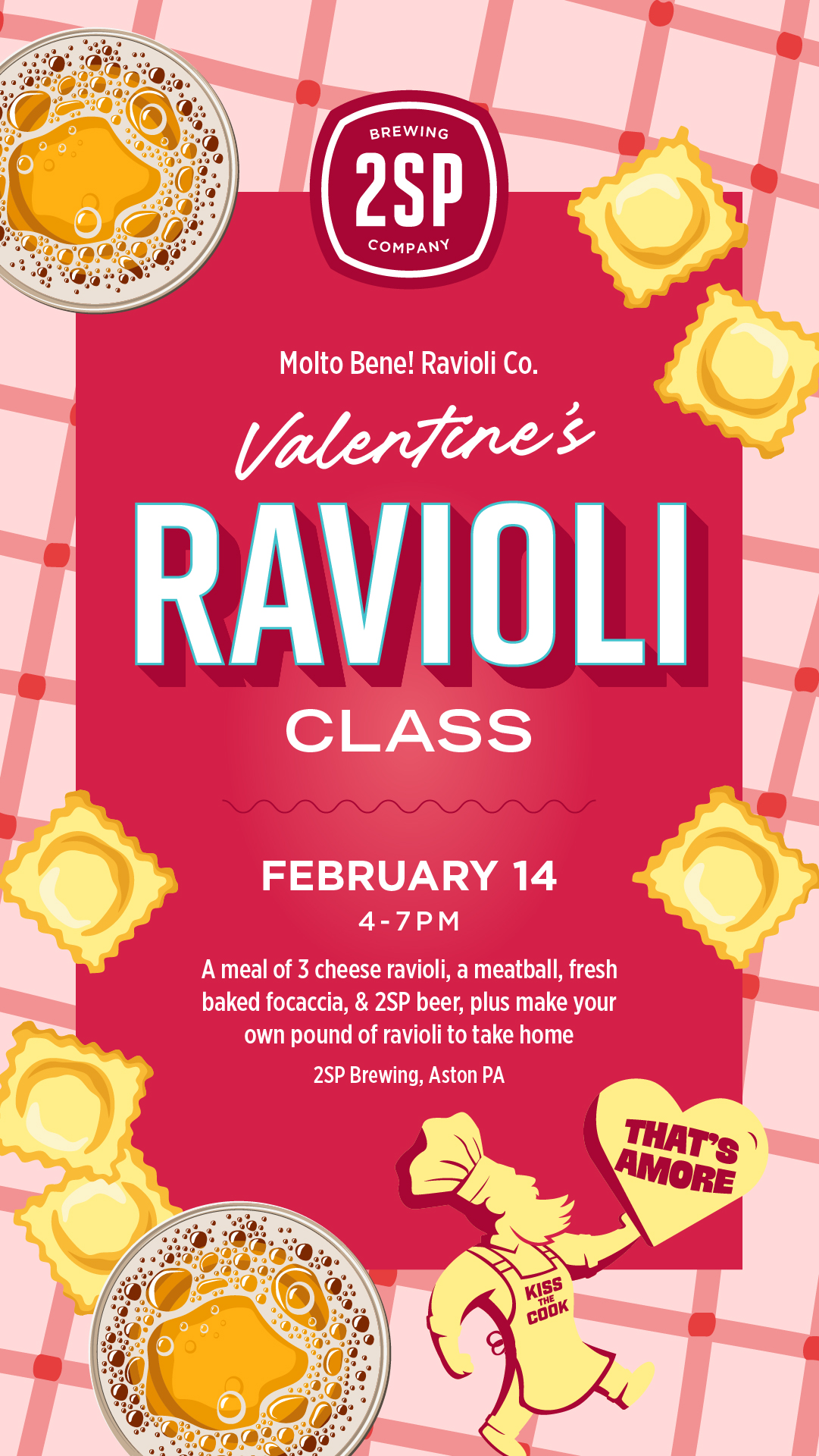 sold out! Looking to get . . . hands on this Valentines Day?Join us for an interactive ravioli making class with our friends from Molto Bene Ravioli!Skip the fancy dinner, long lines, and stuffy atmosphere and sign up for our pasta making class. You'll receive...